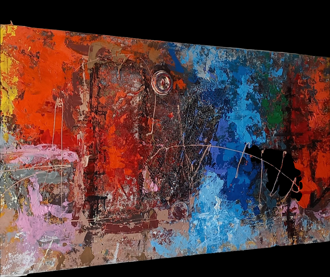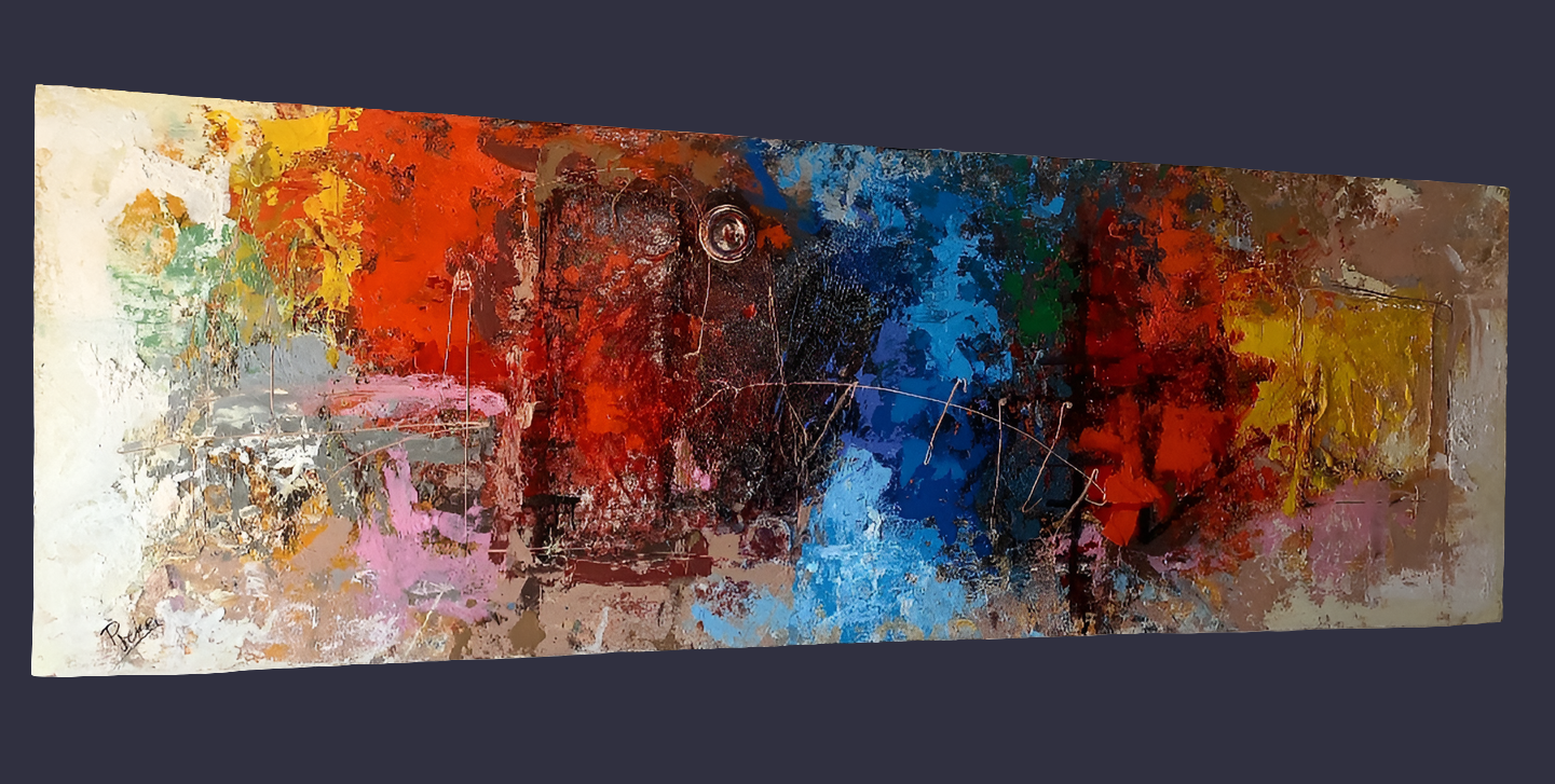 Description: Inspired by restoring art, this piece was modified after it was previously damaged by exposure to the elements. It's current forms shows the flexibility and creativity the artist has with restoring artwork into a unique design and mood.